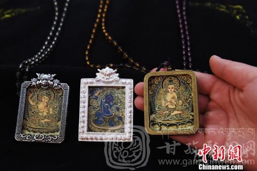張馨藝說,微型唐卡完成后,經(jīng)精美銀盒裝飾后,不僅可以佩戴于身上,還可以掛在家中、汽車?yán)铮斜F桨驳囊馑?。相對于巨幅唐卡,價(jià)格更容易被民眾接受,也有收藏的價(jià)值。