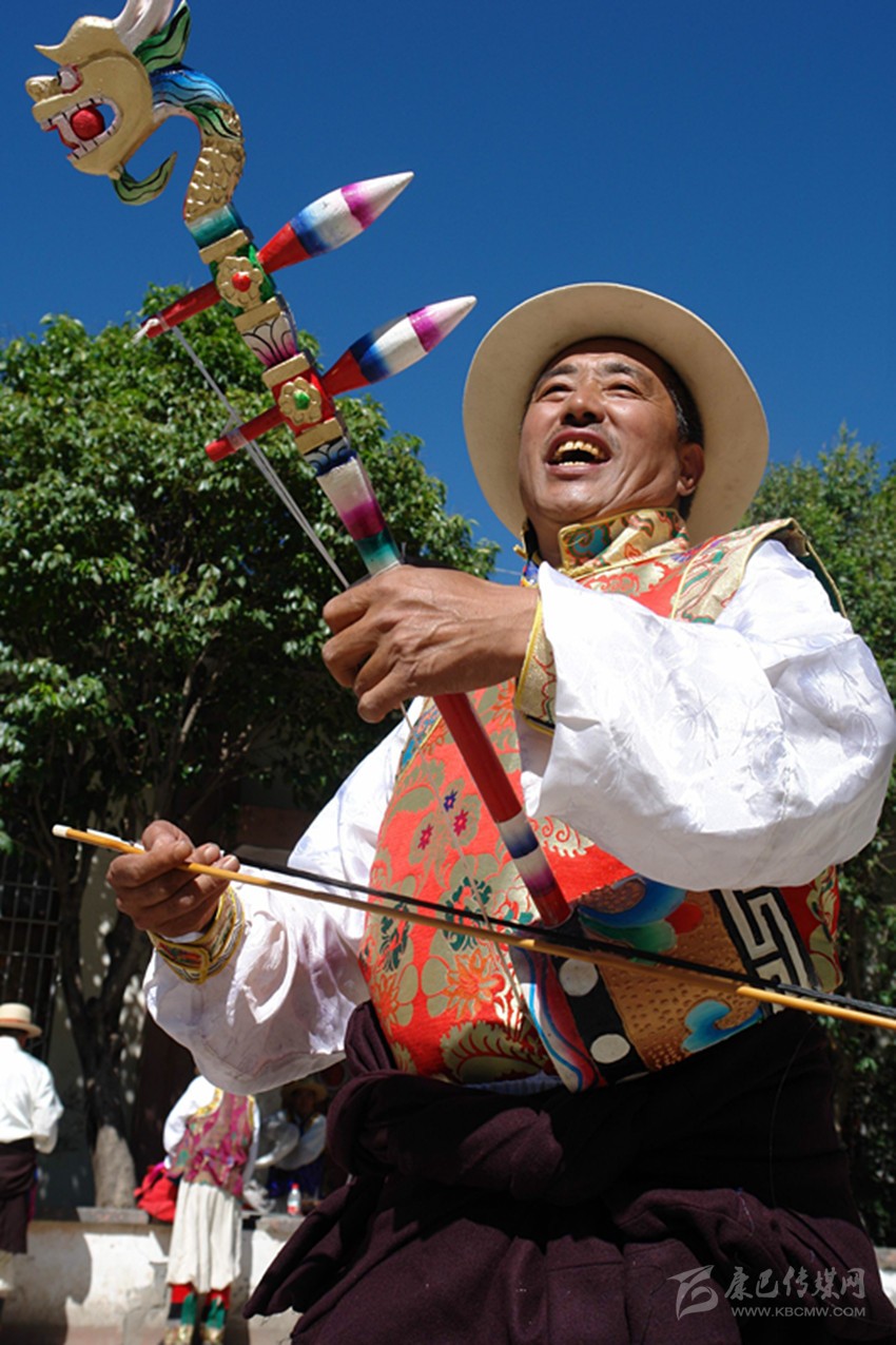 八歲時(shí),就從外婆那里學(xué)會(huì)了拉“胡幾”,拉得不好,鄰居們笑:“咿咿呀呀的,像驢子在叫”。人們?cè)谔镩g地角跳弦子時(shí),他夾在圈子里“臊堂子”調(diào)皮,后來(lái)便跟著大人跳,跳著跳著就學(xué)會(huì)了。有些動(dòng)作不標(biāo)準(zhǔn),外婆和母親就會(huì)笑著糾正。1972年,縣上的“毛澤東思想文藝宣傳隊(duì)”選中了剛滿十四歲的他,在“文革”中后期鋪天蓋地的運(yùn)動(dòng)中,他們上山下鄉(xiāng)進(jìn)軍營(yíng)送文化,弦子舞技得到強(qiáng)化,藏二胡就是在這期間越拉越好的。那時(shí)候糧食還沒(méi)有過(guò)關(guān),公社分配的工分又重,家里的日子過(guò)得很艱難。經(jīng)常跟宣傳隊(duì)唱唱跳跳,可以不做那些繁重的農(nóng)活了,他還暗地里偷偷慶幸過(guò)?!拔母铩苯Y(jié)束后,縣上成立了業(yè)余弦子隊(duì),他自然也在其中,這時(shí),他已經(jīng)能記住二百多首弦子詞曲了。西藏恢復(fù)雪頓節(jié)那年,應(yīng)該是1986年吧,他們又跳到了圣地拉薩,受到了西藏各地官員和群眾的歡迎??途永_的巴塘人在雪頓節(jié)盛典上看到巴塘弦子,流下了激動(dòng)的淚水,很多人過(guò)來(lái)跟他們“打招呼”,問(wèn)候家鄉(xiāng)人。跳弦子五十多年,去拉薩應(yīng)該是最難忘的事情了?!鞍桌瓫_!說(shuō)拉薩道拉薩,拉薩建在海面上。”這是小時(shí)候外婆教他唱的。和所有的藏族一樣,他從小就向往那塊圣地。八十年代交通極其不方便,去成都都要走整整四天,去拉薩多難啊,所以村里人都很羨慕他們弦子隊(duì)。他還記得,在向布達(dá)拉宮虔身朝拜的那一刻,他流下了感動(dòng)和幸福的淚水。