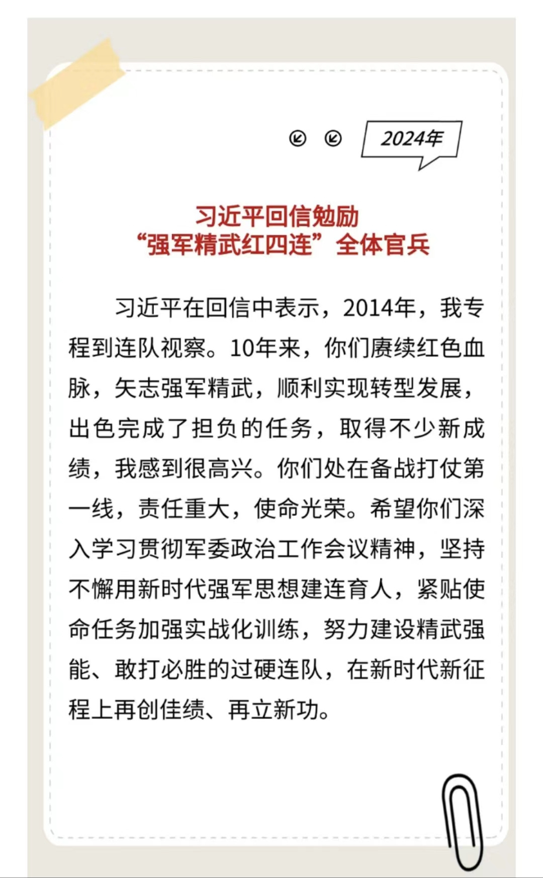 在回信中,習(xí)主席提到2014年到連隊(duì)視察的往事。