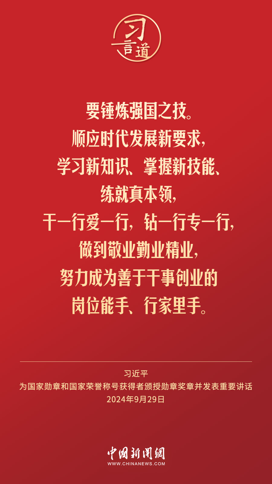 經(jīng)中共中央批準(zhǔn),中華人民共和國國家勛章和國家榮譽(yù)稱號頒授儀式于9月29日上午10時在人民大會堂隆重舉行。中共中央總書記、國家主席、中央軍委主席習(xí)近平向國家勛章和國家榮譽(yù)稱號獲得者分別授予“共和國勛章”“友誼勛章”和國家榮譽(yù)稱號獎?wù)虏l(fā)表重要講話。習(xí)近平指出——