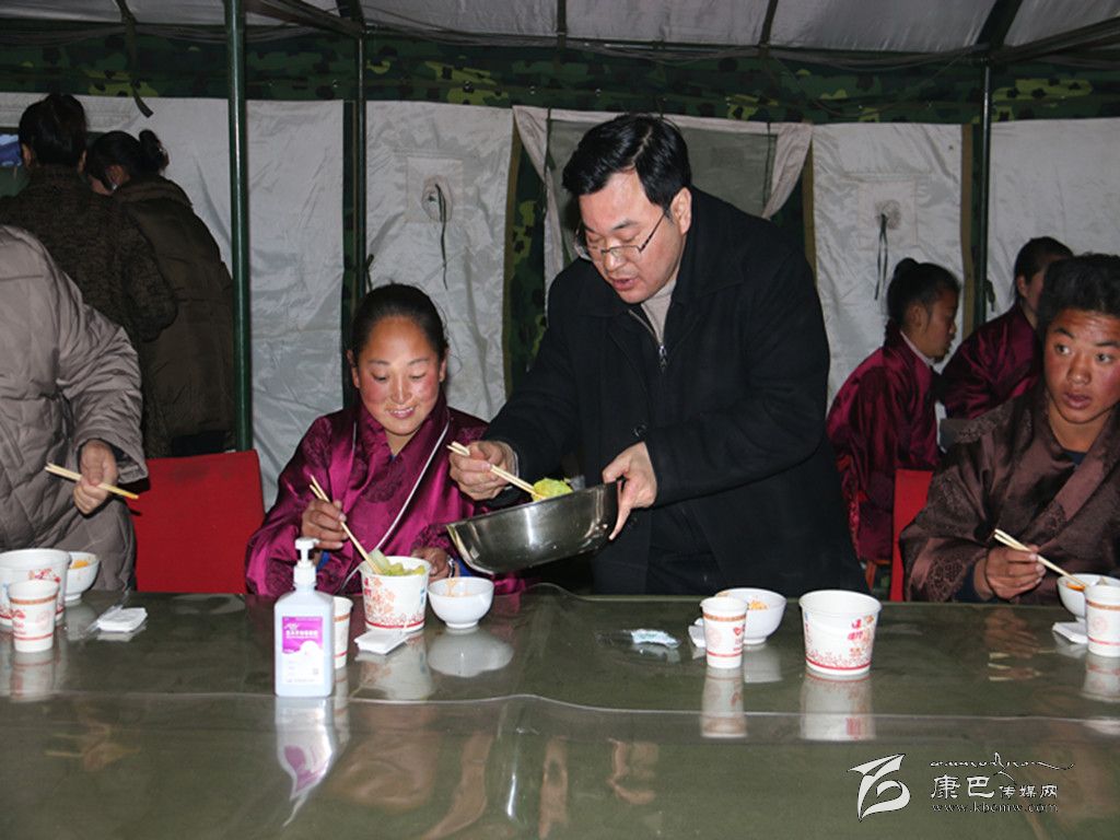 “這水餃做得很不錯(cuò)”,州委書記胡昌升一邊吃著水餃,一邊對(duì)坐在身旁的學(xué)生澤仁巴姆說(shuō)道,“明天就要回家過(guò)寒假了,你們家里也受了災(zāi),回家一定要多幫忙做事”。澤仁巴姆連連應(yīng)允,“回去我還要告訴父母地震時(shí)學(xué)校發(fā)生的一切,有這么多叔叔阿姨幫助我們”。