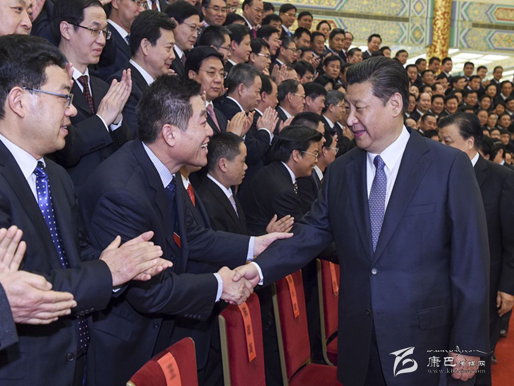 下午3時(shí),習(xí)近平等來(lái)到人民大會(huì)堂金色大廳,同代表們親切握手,并合影留念。