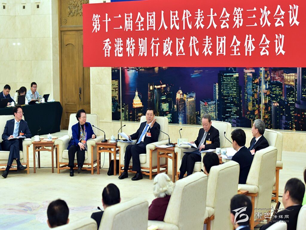 張德江在香港代表團、澳門代表團參加審議。張德江分別與香港、澳門地區(qū)全國人大代表進行了親切交流。他表示,過去一年,面對新情況新挑戰(zhàn),在中央政府和祖國內(nèi)地大力支持下,香港、澳門特區(qū)行政長官和特區(qū)政府與社會各界人士一道,同心協(xié)力、迎難而上,各項事業(yè)取得新成績,“一國兩制”實踐取得新進展。當前,香港、澳門正處于重要發(fā)展階段。希望香港、澳門地區(qū)全國人大代表引領(lǐng)社會各界人士,支持行政長官和特區(qū)政府依法施政,謀發(fā)展、謀長遠,促團結(jié)、促和諧,為保持港澳長期繁榮穩(wěn)定、實現(xiàn)中華民族偉大復(fù)興的中國夢增光添彩。在香港代表團,張德江指出,中央真誠希望香港特別行政區(qū)按照香港基本法和全國人大常委會決定的規(guī)定實行行政長官普選。這是中央的一貫立場,也是廣大香港同胞的殷切期盼。希望香港社會各界人士在行政長官和特區(qū)政府帶領(lǐng)下,求同存異,凝聚共識,力爭實現(xiàn)2017年行政長官普選目標,譜寫香港民主發(fā)展新篇章。在澳門代表團,張德江希望澳門社會各界認真貫徹好習(xí)近平主席在慶祝澳門回歸祖國15周年大會上的重要講話精神,在行政長官和特區(qū)政府帶領(lǐng)下,著力促進經(jīng)濟適度多元可持續(xù)發(fā)展,不斷改善民生,推動澳門“一國兩制”實踐在新的歷史起點上沿著正確方向走穩(wěn)、走實、走遠。