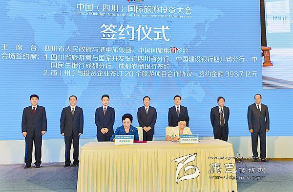 簽約儀式上,省政府與港中旅集團、中國國旅集團分別簽訂促進旅游業(yè)發(fā)展戰(zhàn)略合作協(xié)議;省旅游局與國家開發(fā)銀行四川省分行、中國建設銀行四川省分行、中國民生銀行成都分行、成都農商銀行,分別簽訂支持旅游業(yè)發(fā)展戰(zhàn)略合作協(xié)議;各市(州)與相關投資企業(yè)簽訂20個旅游項目合作協(xié)議,簽約金額393.7億元。