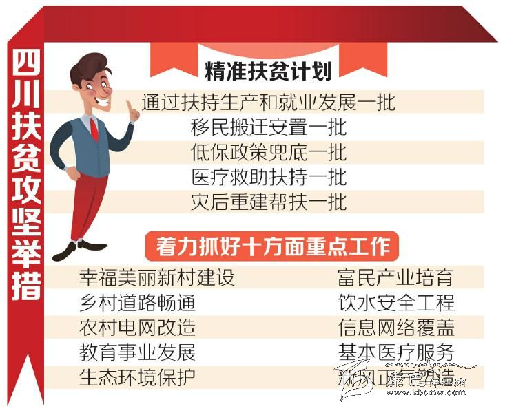 2014年,四川已摸清家底:全省共有11501個貧困村、88個貧困縣,168.48萬戶貧困戶和497.65萬貧困人口。四川省扶貧和移民局副局長劉兵說,目前正進(jìn)入精準(zhǔn)扶貧、精準(zhǔn)脫貧的“攻堅拔寨”關(guān)鍵時期。7月初,四川出臺聚焦各類貧困人口的精準(zhǔn)扶貧計劃,即通過扶持生產(chǎn)和就業(yè)發(fā)展一批、移民搬遷安置一批、低保政策兜底一批、醫(yī)療救助扶持一批、災(zāi)后重建幫扶一批。