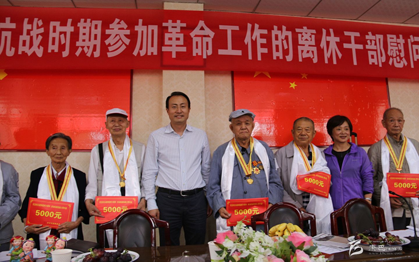 9月2日,甘孜州抗戰(zhàn)時(shí)期參加革命工作的離休干部慰問大會在州屬雅安干休所舉行。州委常委、組織部長趙波出席會議并為我州1945年9月前參加過抗戰(zhàn)的7位老戰(zhàn)士代表頒發(fā)了中國人民抗日戰(zhàn)爭暨世界反法西斯戰(zhàn)爭勝利70周年紀(jì)念章,同時(shí)還送上了慰問金。