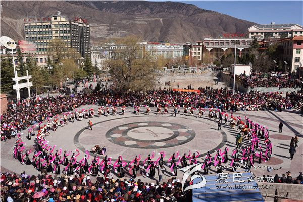 本網(wǎng)訊 (羅凌 志瑪 /文 王娟 多吉澤仁/圖)2月10日正值大年初三,高原江南巴塘陽光燦爛,喜慶祥和。該縣夏邛鎮(zhèn)13個(gè)行政村組成8個(gè)表演隊(duì),1000余名農(nóng)民演員穿著節(jié)日的盛裝,到中山廣場(chǎng)參加“巴塘縣(夏邛鎮(zhèn))2016年迎新春暨藏歷火猴年原生態(tài)非遺文化展演”活動(dòng)。