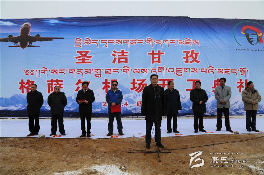 益西達(dá)瓦在致辭中指出,甘孜格薩爾機(jī)場(chǎng)是繼康定機(jī)場(chǎng)、稻城亞丁機(jī)場(chǎng)之后,我州建設(shè)的第三個(gè)機(jī)場(chǎng),項(xiàng)目投資22.88億元,力爭(zhēng)2017年10月建成試飛。甘孜格薩爾機(jī)場(chǎng)的開工建設(shè),是我州實(shí)施“交通先行”戰(zhàn)略的重大舉措,對(duì)進(jìn)一步加快我州經(jīng)濟(jì)社會(huì)全面協(xié)調(diào)可持續(xù)發(fā)展具有十分重要的意義。該機(jī)場(chǎng)的建成,必將開啟我州“十三五”發(fā)展的新征程,必將推動(dòng)我州經(jīng)濟(jì)社會(huì)實(shí)現(xiàn)新跨越,必將促進(jìn)我州旅游等產(chǎn)業(yè)實(shí)現(xiàn)新發(fā)展,必將加快我州農(nóng)牧民群眾脫貧奔康的新步伐。他說,建設(shè)甘孜格薩爾機(jī)場(chǎng)是全州人民特別是北路群眾多年的期盼,機(jī)場(chǎng)規(guī)劃在“十一五”、爭(zhēng)取在“十二五”、建設(shè)在“十三五”,飽含著中央領(lǐng)導(dǎo)和國(guó)家部委的厚愛,體現(xiàn)著省委、省政府的重視,凝聚著歷屆州委、州政府的心血,我們一定要倍加珍惜,一定要把甘孜格薩爾機(jī)場(chǎng)建設(shè)成一流的高原機(jī)場(chǎng)。希望甘孜、德格兩縣通力合作、協(xié)調(diào)配合,切實(shí)為機(jī)場(chǎng)建設(shè)營(yíng)造良好的外部環(huán)境;希望州級(jí)相關(guān)部門簡(jiǎn)化程序、搞好服務(wù),切實(shí)為該機(jī)場(chǎng)建設(shè)開辟“綠色”通道;希望廣大人民群眾多理解、多支持,切實(shí)擁護(hù)機(jī)場(chǎng)的各項(xiàng)建設(shè);希望各參建單位和廣大建設(shè)者發(fā)揚(yáng)“亞丁機(jī)場(chǎng)精神”,努力把甘孜格薩爾機(jī)場(chǎng)建設(shè)成為一流的標(biāo)桿工程。
