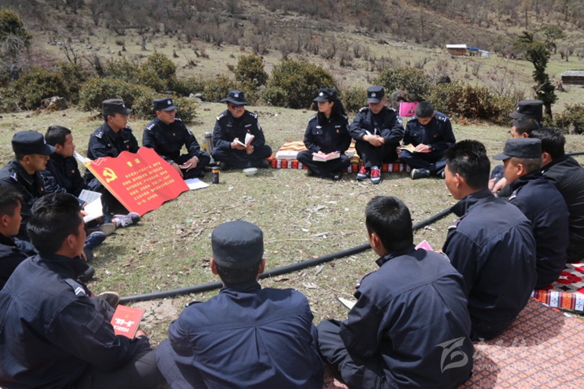 九龍縣公安局黨員在蟲草山上一邊為群眾服務(wù),一邊開展“兩學(xué)一做”學(xué)習(xí)教育。本網(wǎng)資料庫(kù)圖