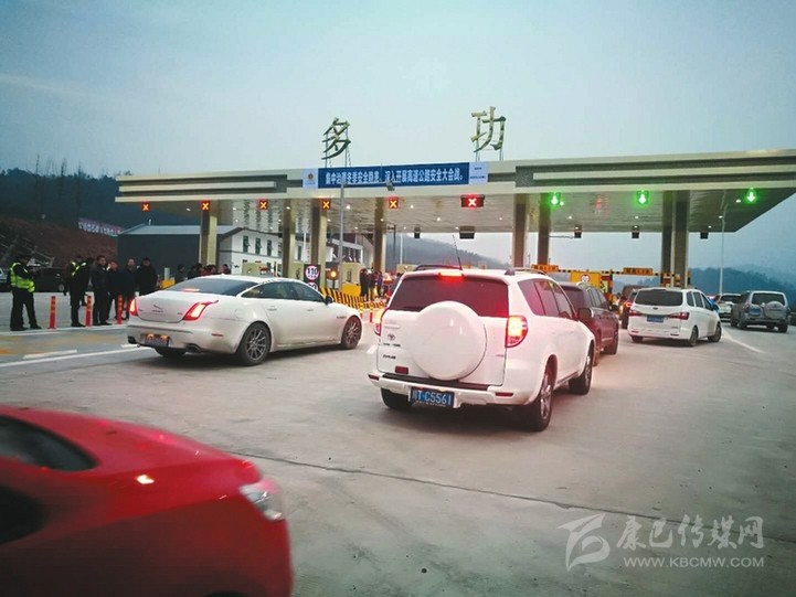 2017年12月31日下午5時(shí)許,在雅康高速多功收費(fèi)站外,雖然高速尚未開通,二十余輛小轎車已排起了隊(duì),等待駛?cè)胙趴蹈咚佟?/p>