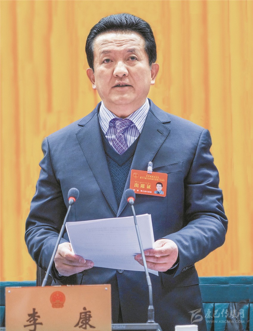 州長肖友才代表州人民政府向大會作政府工作報告。報告分三部分:2017年工作回顧;2018年主要目標(biāo)任務(wù);2018年重點工作。