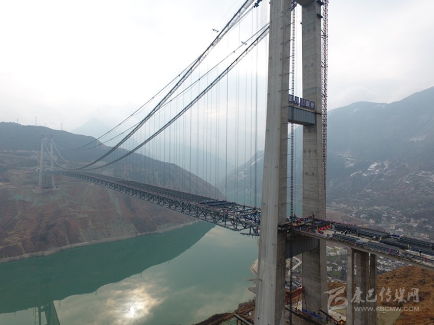 “大橋鋼桁梁完成合龍,標(biāo)志著大橋全面進(jìn)入橋面施工階段,也標(biāo)志著這座建設(shè)在高海拔、高地震烈度帶、復(fù)雜風(fēng)場環(huán)境下的超大跨徑鋼桁梁懸索橋,施工中最難、風(fēng)險(xiǎn)最大的施工全面完工?!毖趴蹈咚夙?xiàng)目部副經(jīng)理柏國勝激動(dòng)地說。