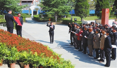 在瀘定橋紀(jì)念館重溫入黨誓詞。本網(wǎng)資料庫圖片