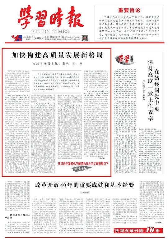 編者按:8月8日,《學習時報》頭版頭條“在習近平新時代中國特色社會主義思想指引下”欄目刊載四川省委副書記、省長尹力的署名文章《加快構建高質量發(fā)展新格局》,本網今日予以轉載: