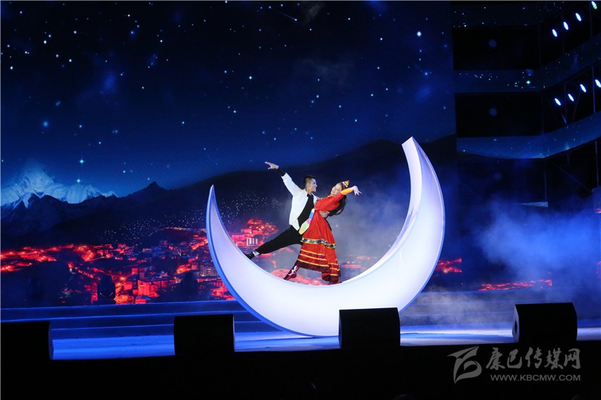 說唱《康定情歌》并配以街舞是本劇目對(duì)《康定情歌》演繹形式的大膽創(chuàng)新。演出中,幾名穿著時(shí)尚、朝氣蓬勃的青年,用歡快的節(jié)奏、靈活的動(dòng)作,展現(xiàn)了《康定情歌》的深厚內(nèi)涵,也宣傳了康定的城市特質(zhì)。獨(dú)具一格的表演讓人耳目一新、深受感染,體育場(chǎng)內(nèi)歡呼不斷、吶喊震天,觀眾的熱情與演員的激情互相激蕩,久久不絕。