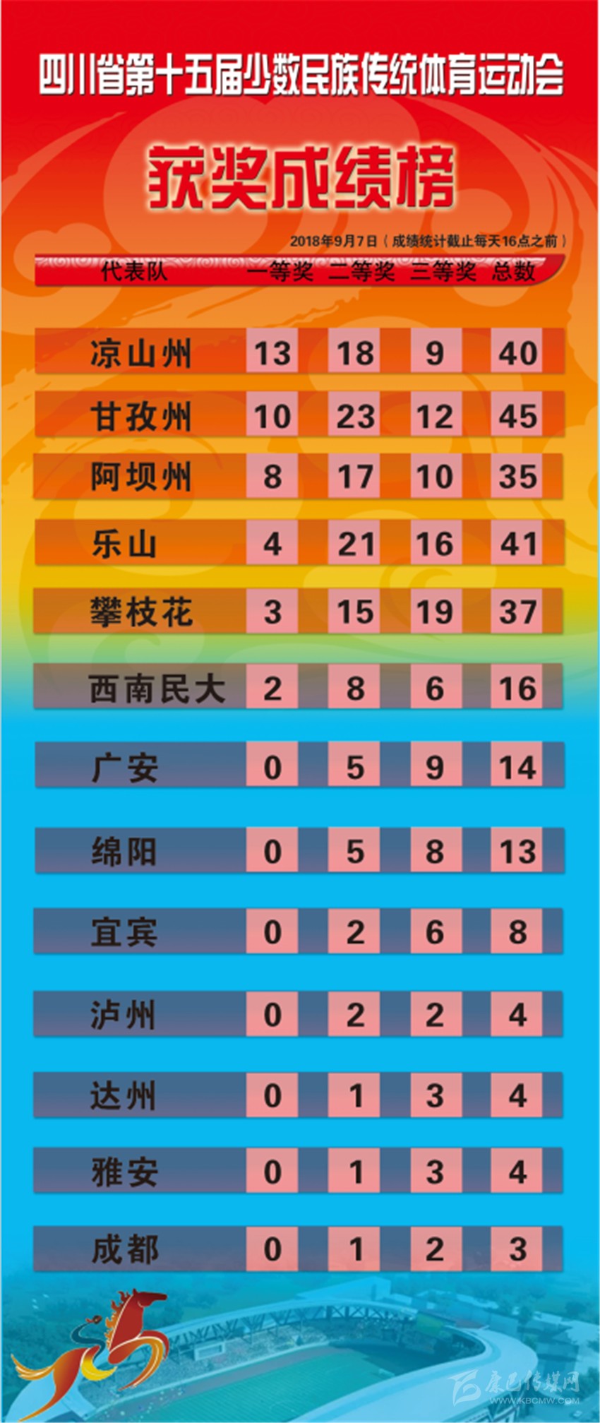 9月4日上午11時(shí)許,四川省第十五屆少數(shù)民族傳統(tǒng)體育運(yùn)動(dòng)會(huì)傳統(tǒng)弩混合團(tuán)體賽決賽在州青少年體育活動(dòng)中心圓滿結(jié)束,本屆運(yùn)動(dòng)會(huì)的首批獎(jiǎng)牌得主也由此產(chǎn)生,攀枝花市代表隊(duì)以745環(huán)的總成績(jī)獲得第一名。