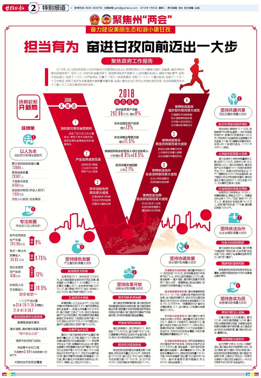 州人民政府州長(zhǎng)肖友才代表州政府作工作報(bào)告?!墩ぷ鲌?bào)告》由三部分組成:2018年工作回顧;2019年主要目標(biāo);2019年重點(diǎn)工作。