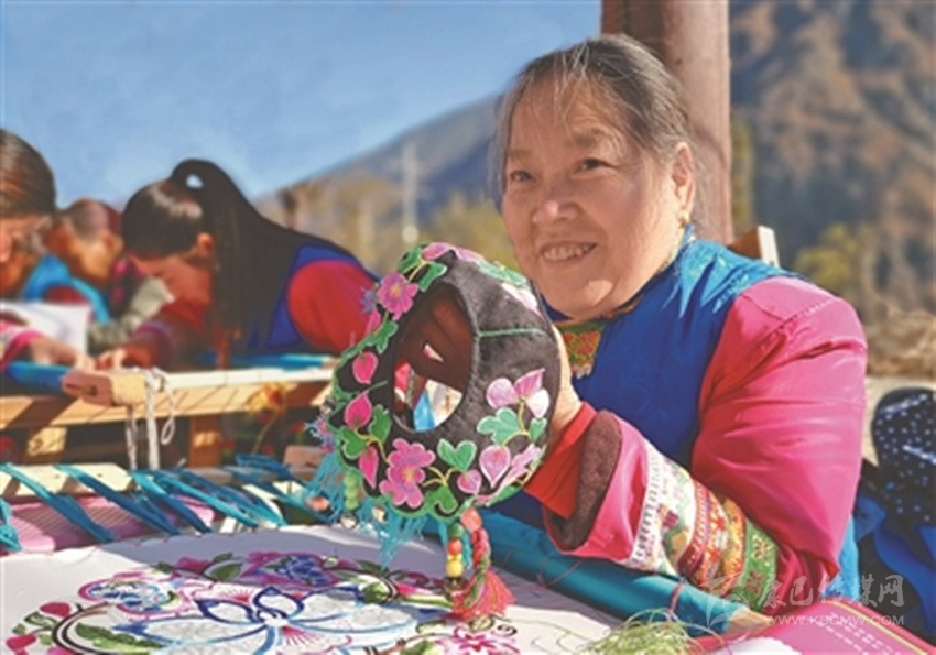 藏族繡娘高永輝展示繡品。圖片由本網(wǎng)資料庫提供