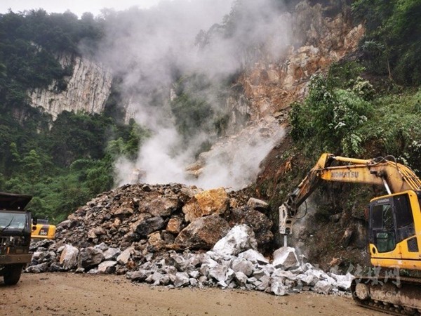 周宗海說,為搶通中斷路段,珙縣自然資源和規(guī)劃局于18日中午一點(diǎn)開始,組織機(jī)具10余臺(tái) ,人員20余人進(jìn)行連續(xù)加班作業(yè),對(duì)垮塌巖體進(jìn)行爆破、清運(yùn),清理碎石約15000噸,于19日晚上十點(diǎn)搶通了該路段。