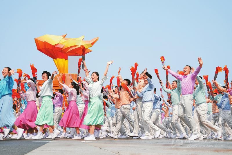 “素樸而天下莫能與之爭美?!毙は驑s介紹,回歸群眾、回歸真情、回歸素樸是整個主創(chuàng)團(tuán)隊和執(zhí)行團(tuán)隊的創(chuàng)作理念。為了參加游行的群眾能更好地展現(xiàn)出自己的風(fēng)采,導(dǎo)演組200多次下沉到各個方陣溝通,從群眾中汲取表演元素。群眾自發(fā)設(shè)計動作,再由導(dǎo)演引導(dǎo)群眾藝術(shù)化地展現(xiàn)生活。