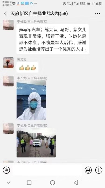“我給我女兒報(bào)名,馬相汶,女,25歲,大學(xué)畢業(yè),北京工作,現(xiàn)滯留成都,另我回去后接她的班?!苯眨粭l微信截圖傳遍了天府新區(qū)退役軍人的朋友圈。