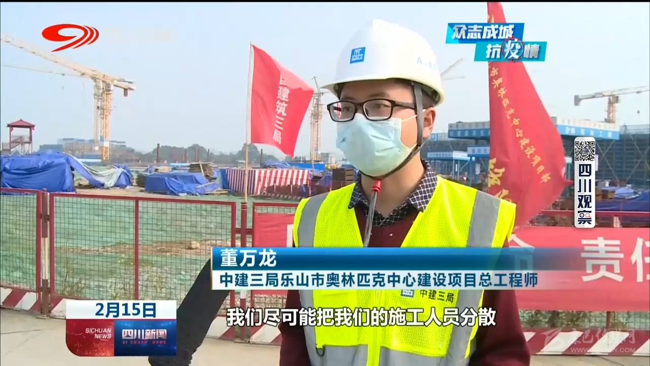 中建三局樂山市奧林匹克中心建設(shè)項目總工程師 董萬龍:“我們盡可能把我們的施工人員分散,不要聚集,對內(nèi)我們做好防控物資的保障,口罩、消毒水以及酒精這些防疫物資已經(jīng)齊全。”