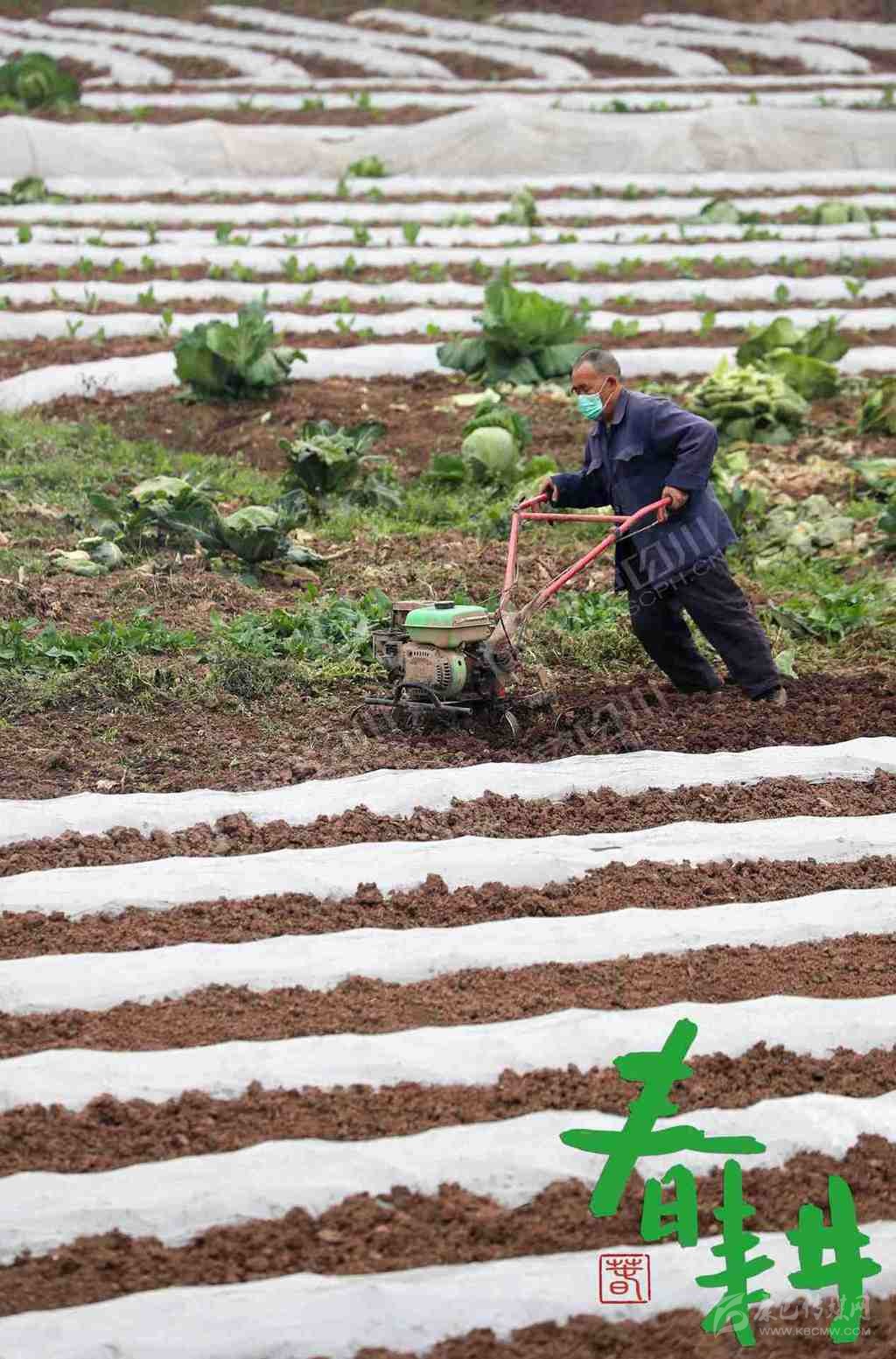 內(nèi)江市東興區(qū)富溪鎮(zhèn)太平壩村,戴著口罩的村民抓住晴好天氣忙著備耕。