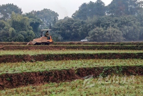 2月24日,瀘州市合江縣白米鎮(zhèn)橋上村,專業(yè)合作社的機耕手在用旋耕機耕地。 記者 郝飛 攝