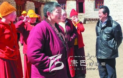 在雅江縣委、縣人大常委會(huì)主要領(lǐng)導(dǎo)及統(tǒng)戰(zhàn)、宗教部門的陪同下,李康來(lái)到距縣城90多公里的雅江縣紅龍鄉(xiāng)158k覺(jué)姆寺,同寺管會(huì)成員和部分僧尼進(jìn)行座談。他詳細(xì)了解寺廟的基本情況,仔細(xì)詢問(wèn)僧尼的生產(chǎn)生活和寺廟佛事活動(dòng)開(kāi)展情況,認(rèn)真傾聽(tīng)僧尼的反映和訴求,對(duì)僧尼提出的困難和問(wèn)題詳細(xì)記錄,認(rèn)真答復(fù),耐心細(xì)致地講解宣傳黨的民族宗教和惠寺惠僧政策。座談會(huì)上,李康主任簡(jiǎn)短的開(kāi)場(chǎng)白很快拉近了大家的距離,他說(shuō),這次專門到寺廟的目的就是看望大家,建立聯(lián)系,了解情況,收集問(wèn)題,希望大家暢所欲言,互相溝通,加強(qiáng)交流,增進(jìn)了解,共同推進(jìn)寺廟的健康有序發(fā)展。當(dāng)他了解到該寺的水、電問(wèn)題在縣委、政府的關(guān)心重視下,今年即將得到解決時(shí),他說(shuō),州、縣黨委、政府歷來(lái)十分關(guān)心寺廟的基礎(chǔ)設(shè)施建設(shè)和廣大僧尼的生產(chǎn)生活、健康醫(yī)療等問(wèn)題,寺廟的水電、道路、通信等基礎(chǔ)設(shè)施始終得到了黨委、政府的關(guān)心支持,僧尼的醫(yī)保、養(yǎng)老和最低生活保障等生活保障措施正在全州寺廟全面覆蓋。對(duì)寺廟的其他困難和問(wèn)題,州、縣將積極協(xié)調(diào),盡快解決。他強(qiáng)調(diào)指出,158k覺(jué)姆寺近年來(lái)通過(guò)縣委、政府綜合施策,強(qiáng)化教育,規(guī)范管理,寺廟整體情況良好,步入了依法管理的良性軌道。他講到,我們黨的民族宗教政策是長(zhǎng)期的、一貫的,寺廟作為基本社會(huì)單元,僧尼作為普通公民和基本群眾,要自覺(jué)接受當(dāng)?shù)攸h委、政府依法管理,維護(hù)祖國(guó)統(tǒng)一、民族團(tuán)結(jié)和法制尊嚴(yán),推動(dòng)宗教與社會(huì)主義社會(huì)相適應(yīng),與現(xiàn)代文明進(jìn)程相協(xié)調(diào),積極投入全州發(fā)展中來(lái),共同建設(shè)好我們的和諧幸福家園。任何寺廟只要服從當(dāng)?shù)攸h委、政府的管理,認(rèn)真貫徹落實(shí)好藏傳佛教的各項(xiàng)管理規(guī)定,真正發(fā)揮好宗教的正面積極作用,寺廟才會(huì)得到黨委、政府更多的關(guān)心支持,才會(huì)得到更好的健康發(fā)展。他希望158k覺(jué)姆寺要依法加強(qiáng)宗教事務(wù)的管理,深入貫徹落實(shí)《甘孜州藏傳佛教事務(wù)條例實(shí)施細(xì)則》,促進(jìn)依法治寺、規(guī)范管寺,為維護(hù)正常宗教秩序、服務(wù)經(jīng)濟(jì)社會(huì)發(fā)展、促進(jìn)社會(huì)和諧穩(wěn)定做出積極貢獻(xiàn)。