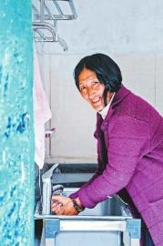 通過(guò)參加學(xué)習(xí)班,不少村民養(yǎng)成了好習(xí)慣。圖為9月13日,卡娘村一位村民正在洗手?! ∷拇ㄔ诰€記者楊樹(shù)攝