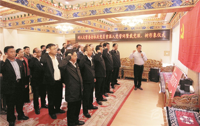 州人大常委會機關黨員重溫入黨誓詞。