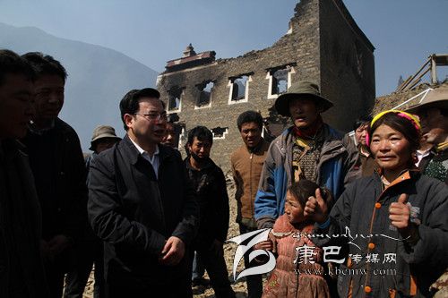 22日早晨8時(shí),胡昌升帶著對(duì)受災(zāi)群眾的惦念、對(duì)災(zāi)情的關(guān)注、對(duì)撲火人員的慰問,驅(qū)車前往康定縣沙德鄉(xiāng)火災(zāi)現(xiàn)場慰問受災(zāi)群眾、查看火災(zāi)災(zāi)情,指揮撲火工作。此前的21日,上赤村洛讓鄧珠的房屋在此次森林火災(zāi)中被燒毀。一到上赤村,胡昌升便踩著帶著余溫的瓦礫來到受災(zāi)農(nóng)戶洛讓鄧珠家,為洛讓鄧珠送上慰問金及毛毯、被子等物資,看望洛讓鄧珠的家人,詳細(xì)詢問家庭基本情況和災(zāi)后安置情況。胡昌升說,大火無情人有情,房子沒了可以再建,東西燒毀了可以再買,人沒事就好,困難是暫時(shí)的,黨委、政府一定會(huì)照顧好你們的生活,和你們一起克服眼前困難,幫助你們盡快建設(shè)更加美麗、更加安全的新家園。他要求縣鄉(xiāng)黨委、政府要幫助洛讓鄧珠切實(shí)解決吃飯、穿衣、帳篷及房屋重建等實(shí)際困難,把黨委政府的溫暖送到他們心上。胡昌升還鼓勵(lì)洛讓鄧珠要振作起來,在黨委政府的幫助下重建家園,不要因受災(zāi)耽誤孩子上學(xué)。希望鄉(xiāng)親們積極伸出援手,幫助洛讓鄧珠家解決生活困難、開展家園重建。