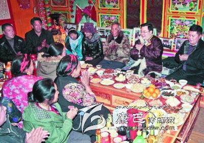 “開展群眾工作以來,大家在思想上發(fā)生了很大變化,不像過去比誰的房子大、誰耍得好,現(xiàn)在比的是誰家培養(yǎng)了幾個大學(xué)生、掙了多少錢。”道孚縣鮮水鎮(zhèn)農(nóng)民謝康生說,“這兩年,胡書記每年都和我們一起過春節(jié),我們很高興。”今年1月27日,農(nóng)歷臘月二十七,州委書記胡昌升冒著嚴(yán)寒,來到道孚縣與謝康生等六戶結(jié)對的藏族“親戚”歡慶新春、共度新年。
