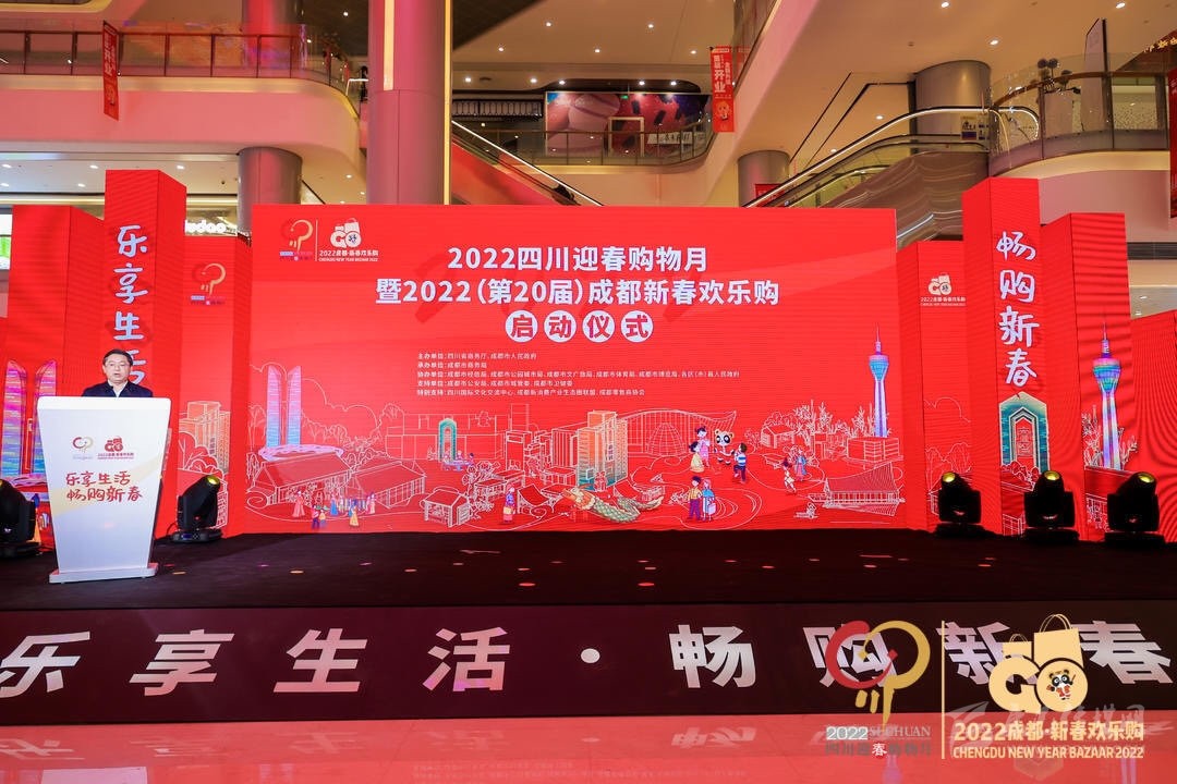 12月30日,由四川省商務(wù)廳、成都市人民政府主辦,成都市商務(wù)局承辦的“2022四川迎春購物月暨成都新春歡樂購”啟動儀式在蓉啟動?;顒蝇F(xiàn)場,成都新春歡樂購活動以沉浸式互動劇的形式繽紛呈現(xiàn),成渝雙城聯(lián)袂開展促銷活動,為元旦、春節(jié)“買買買”備足消費(fèi)大餐。