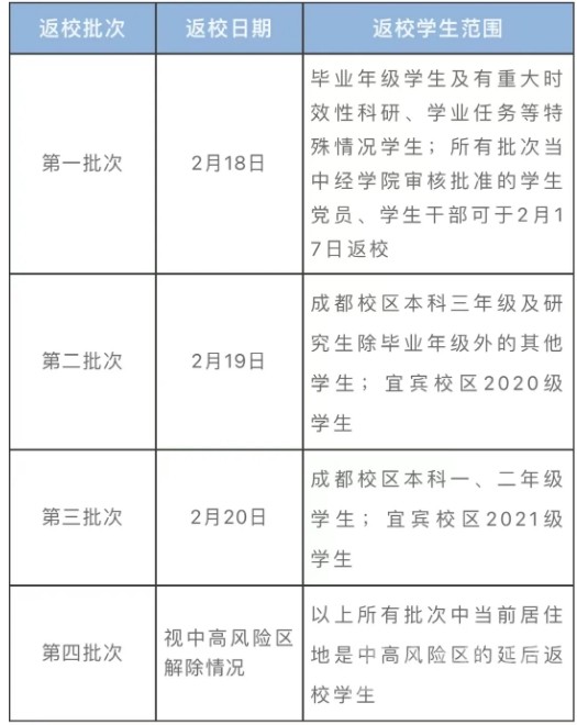 所有學(xué)生不得提前返校,均須遵照學(xué)校通知分批返校。具體安排如下: