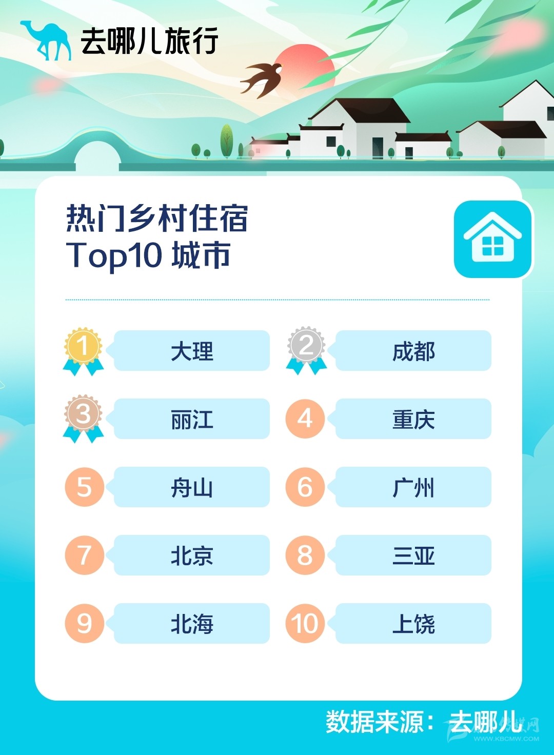 去哪兒旅行預(yù)測(cè):2022清明假期熱門(mén)鄉(xiāng)村住宿TOP10城市。
