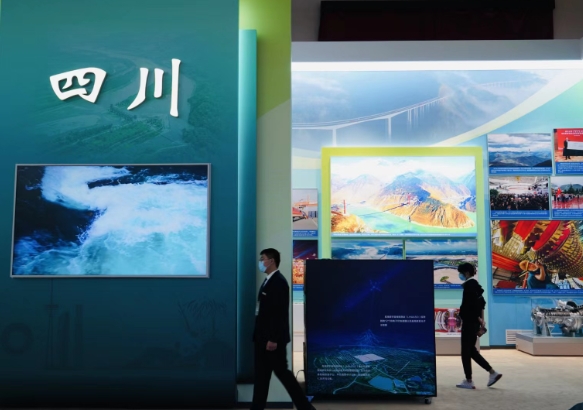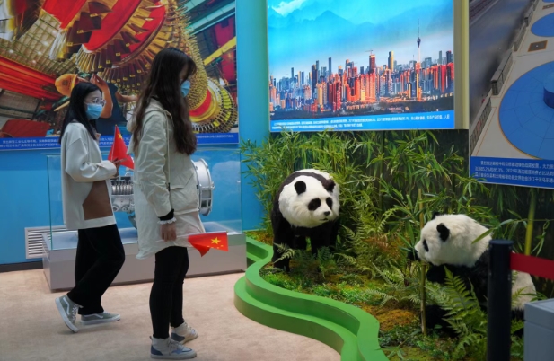 國(guó)慶期間,觀眾在“奮進(jìn)新時(shí)代”主題成就展四川展區(qū)參觀。