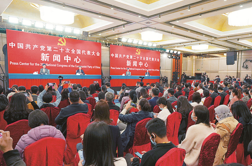 10月21日,中國共產(chǎn)黨第二十次全國代表大會新聞中心舉行記者招待會。生態(tài)環(huán)境部黨組成員、副部長翟青圍繞“建設(shè)人與自然和諧共生的美麗中國”主題與記者交流。這是分會場。 新華社 發(fā)
