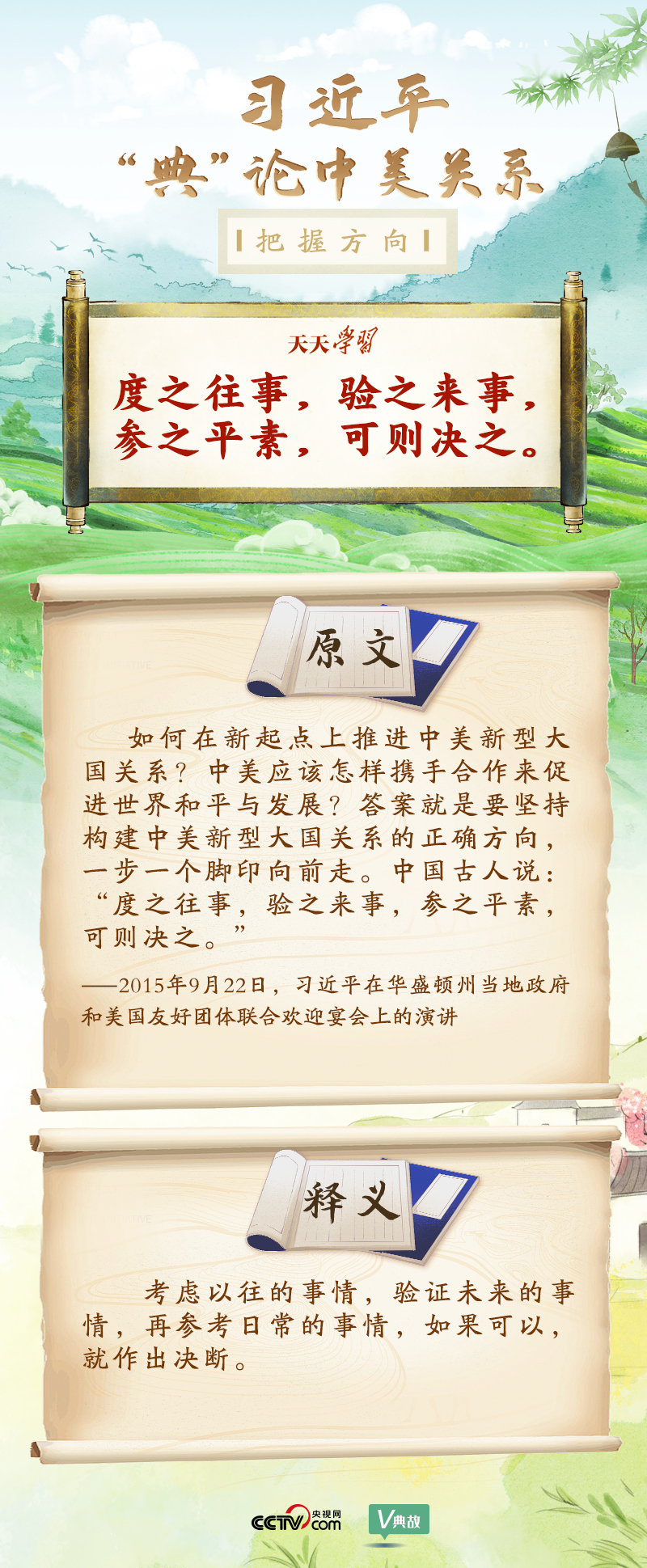 黨的十八大以來,習(xí)近平主席就中美關(guān)系發(fā)表了一系列重要講話。他站在時(shí)代高度分析、研判中美關(guān)系現(xiàn)狀及發(fā)展趨勢(shì),并引經(jīng)據(jù)典為發(fā)展中美關(guān)系指出正確方向。這些論述蘊(yùn)含深刻的戰(zhàn)略思維和政治智慧,具有重大現(xiàn)實(shí)意義和深遠(yuǎn)歷史意義。央視網(wǎng)《天天學(xué)習(xí)》與您一起深刻領(lǐng)會(huì)。