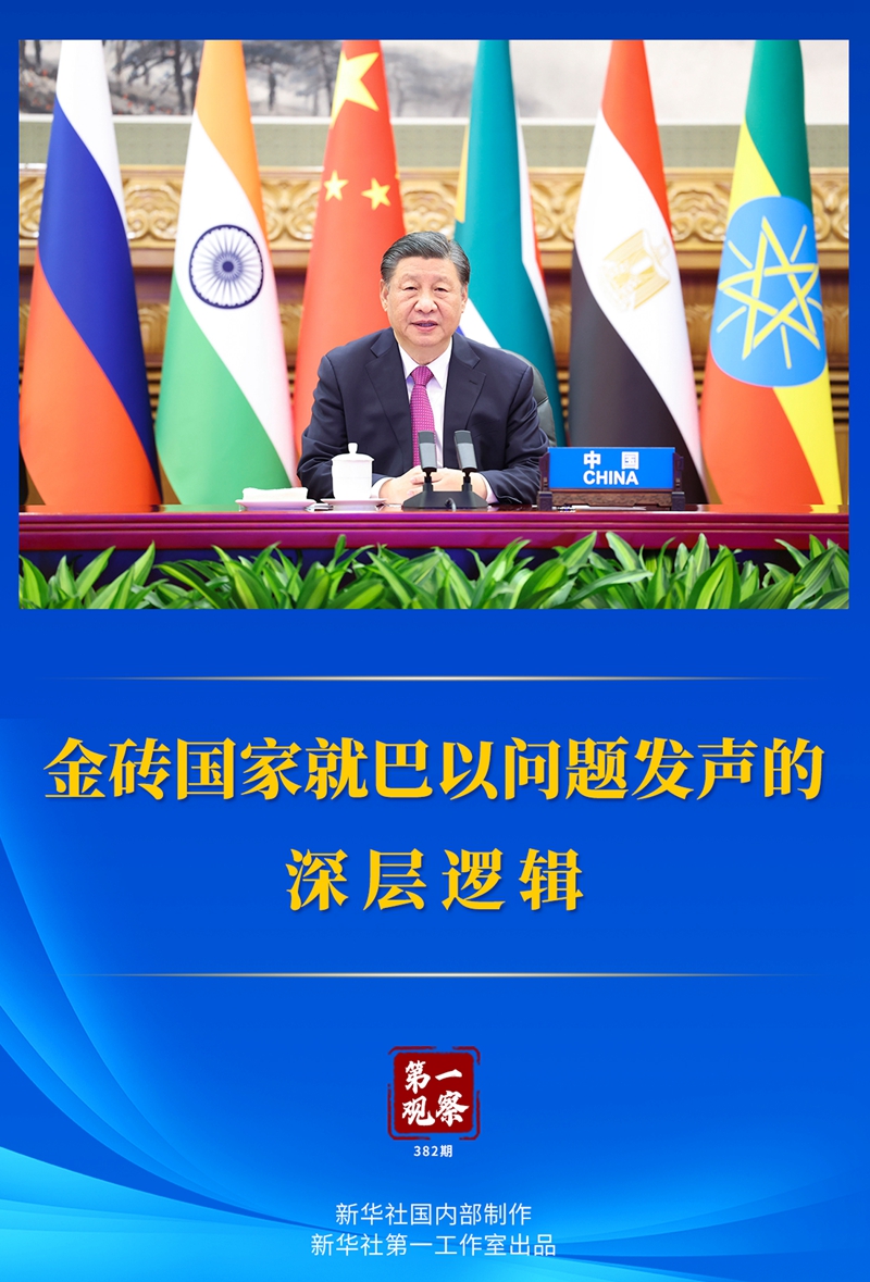 “今天,我們就巴以問題協(xié)調(diào)立場、采取行動,為擴員后的‘大金磚合作’開了個好頭?!绷?xí)近平主席強調(diào)。