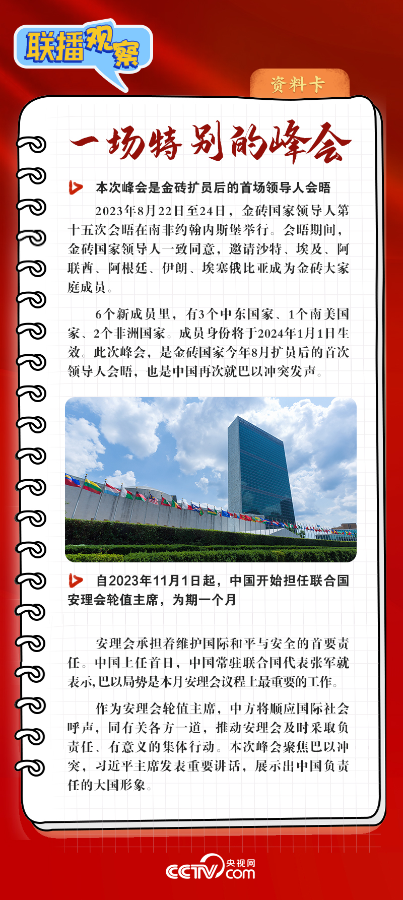 “當(dāng)前形勢下,金磚國家就巴以問題發(fā)出正義之聲、和平之聲,非常及時、非常必要?!痹诒敬螘钪校?xí)主席結(jié)合當(dāng)下巴以局勢,提出三點正義主張。