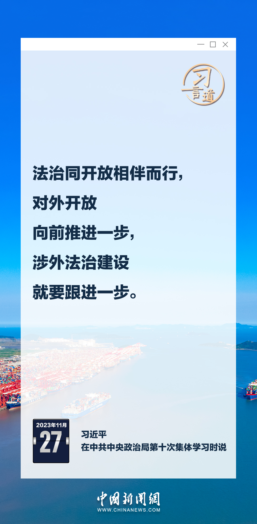 中共中央政治局11月27日下午就加強(qiáng)涉外法制建設(shè)進(jìn)行第十次集體學(xué)習(xí)。中共中央總書(shū)記習(xí)近平在主持學(xué)習(xí)時(shí)強(qiáng)調(diào)——
