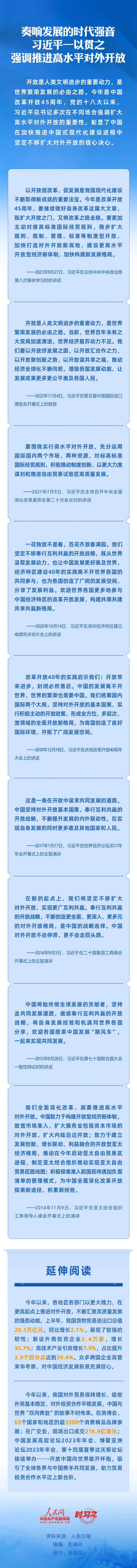 今年是中國(guó)改革開放45周年,中國(guó)將堅(jiān)持推進(jìn)高水平對(duì)外開放,以高質(zhì)量發(fā)展全面推進(jìn)中國(guó)式現(xiàn)代化,為各國(guó)開放合作提供新機(jī)遇。中國(guó)愿同各國(guó)各方一道,以服務(wù)開放推動(dòng)包容發(fā)展,以服務(wù)合作促進(jìn)聯(lián)動(dòng)融通,以服務(wù)創(chuàng)新培育發(fā)展動(dòng)能,以服務(wù)共享創(chuàng)造美好未來,攜手推動(dòng)世界經(jīng)濟(jì)走上持續(xù)復(fù)蘇軌道。