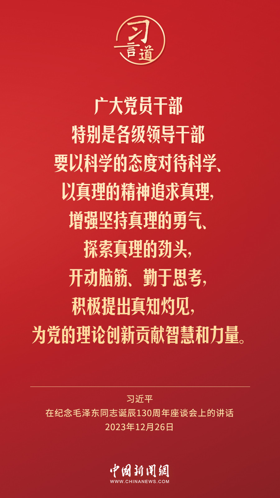 中共中央26日上午在人民大會堂舉行座談會,紀念毛澤東同志誕辰130周年。中共中央總書記、國家主席、中央軍委主席習近平發(fā)表重要講話。習近平指出——