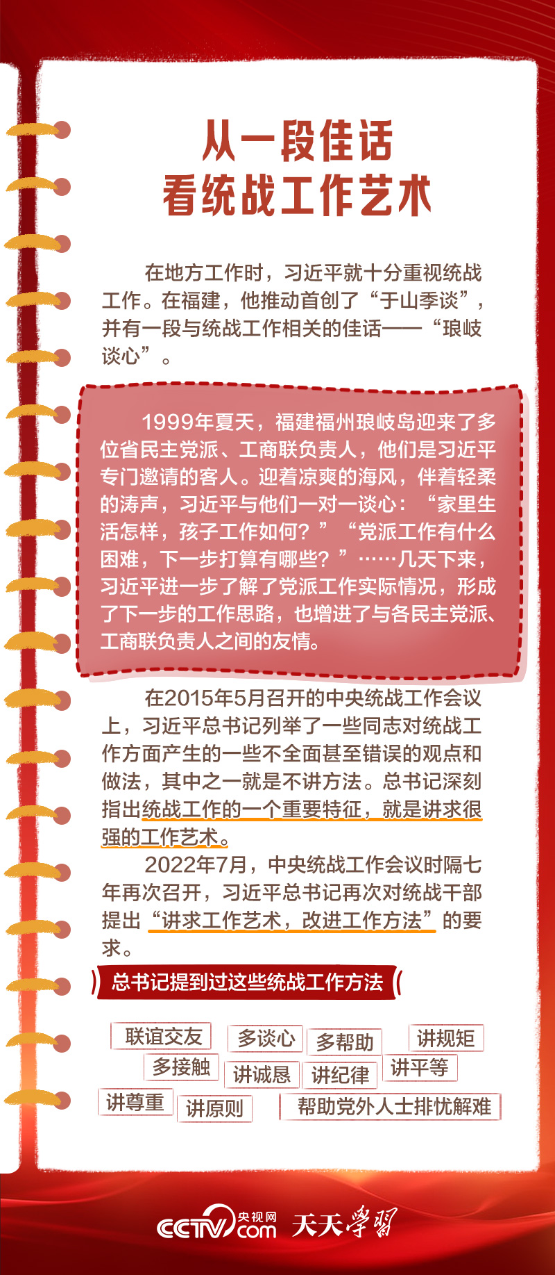 天天學(xué)習(xí)1月16日出版的第2期《求是》雜志發(fā)表了習(xí)近平總書記的重要文章《完整、準(zhǔn)確、全面貫徹落實(shí)關(guān)于做好新時(shí)代黨的統(tǒng)一戰(zhàn)線工作的重要思想》,該文是習(xí)近平總書記2022年7月在中央統(tǒng)戰(zhàn)工作會(huì)議上講話的一部分。文章指出,統(tǒng)一戰(zhàn)線是黨克敵制勝、執(zhí)政興國(guó)的重要法寶,是團(tuán)結(jié)海內(nèi)外全體中華兒女實(shí)現(xiàn)中華民族偉大復(fù)興的重要法寶,必須長(zhǎng)期堅(jiān)持。