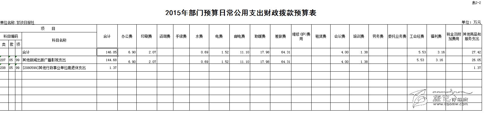 甘孜日?qǐng)?bào)社2015年預(yù)算