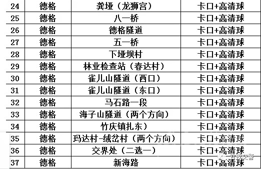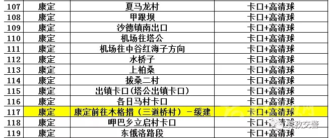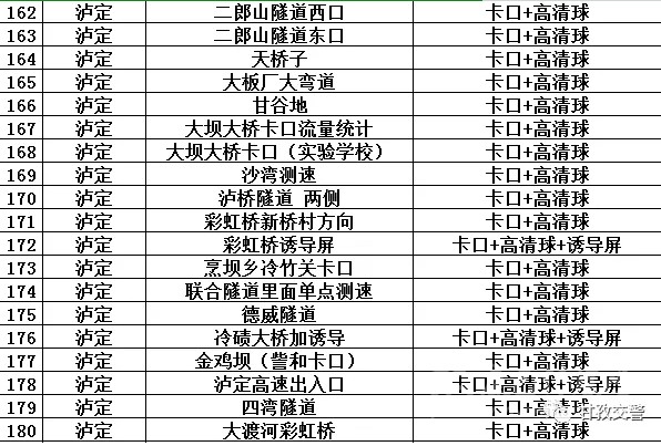 16海螺溝轄區(qū)交通違法抓拍點位