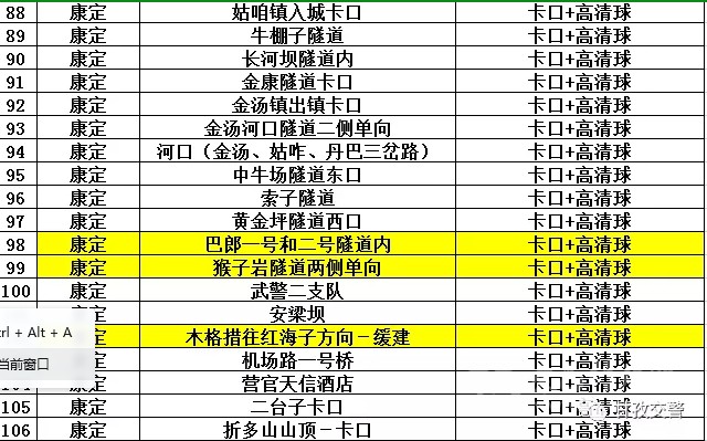 17瀘定轄區(qū)交通違法抓拍點位