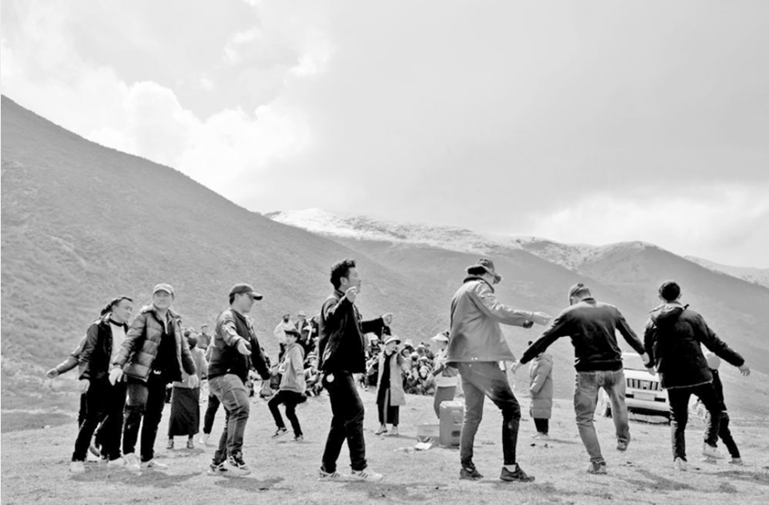 圖為采挖群眾跳起歡快的舞蹈。