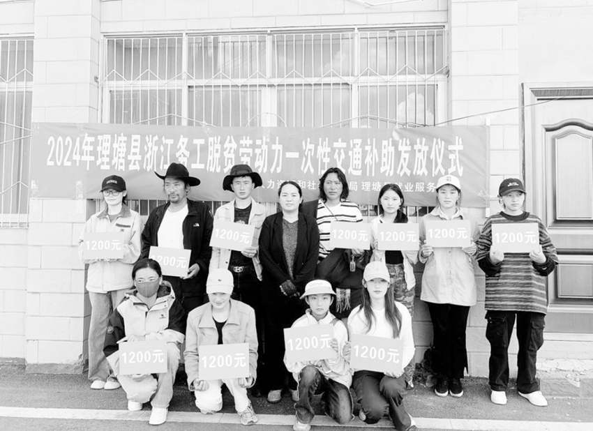 圖為向理塘外出浙江務(wù)工人員發(fā)放交通補(bǔ)助。